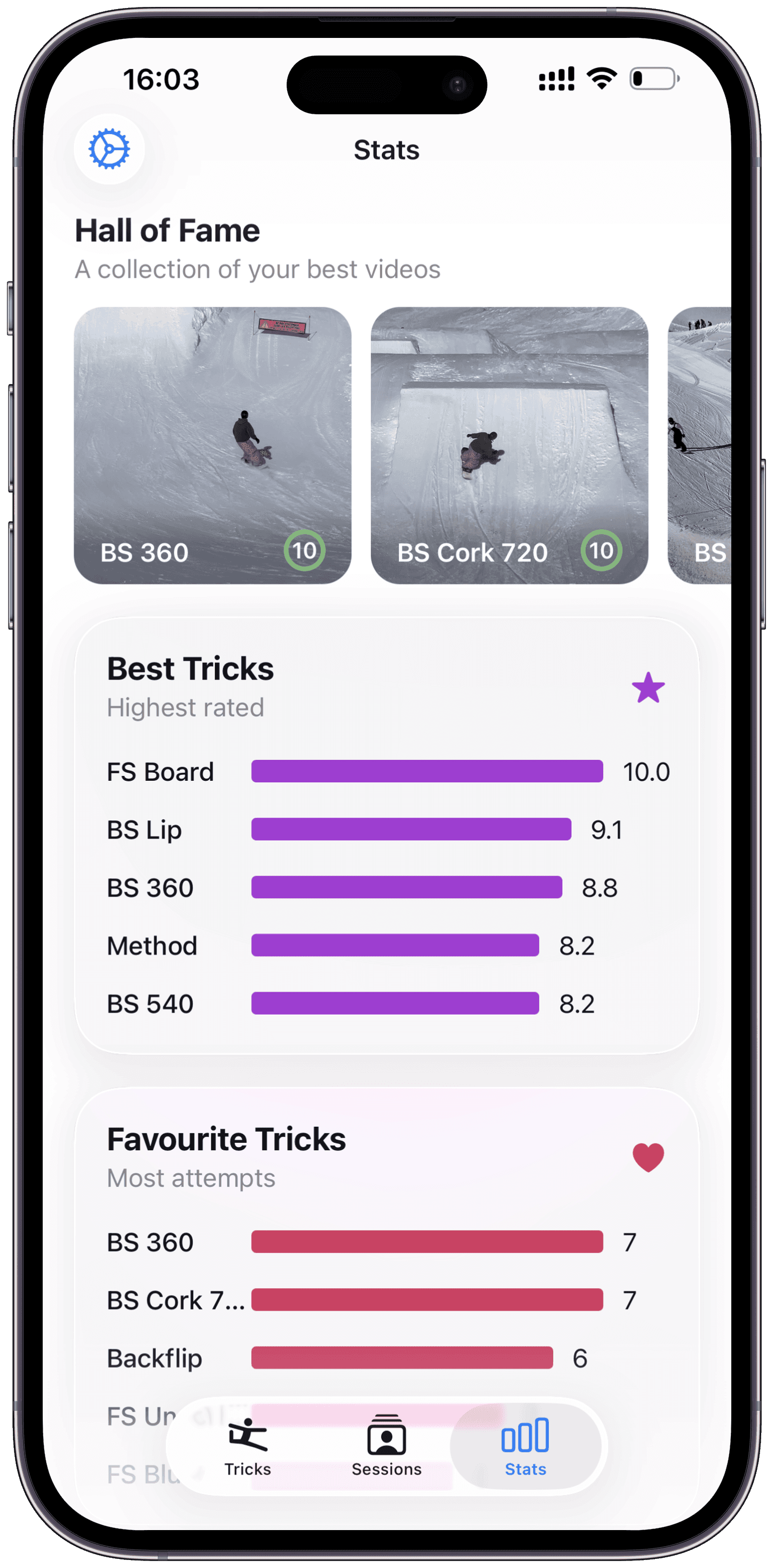 Track your progress in any action sport.